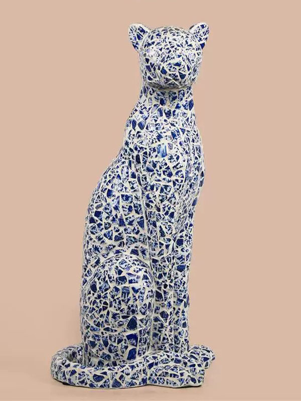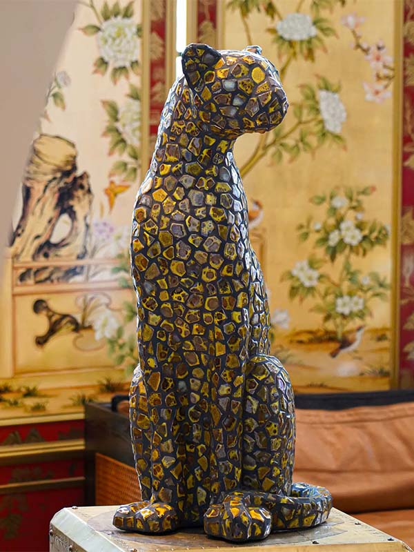 Custom Ceramic Mosaic Leopard Animal Sculpture - Handcrafted Ceramic Artwork